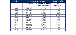 – Los vehículos de renting crecieron casi un 20% y representaron en 2016 el 15,30% sobre las 1.343.816 unidades matriculados en total en España, un 11% superiores al año anterior.