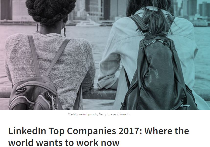 Alphabet (en realidad Google, su principal compañía), Amazon, Facebook Salesforce y Uber son las cinco compañías mas deseadas para trabajar según acaba de hacer público Linkedin con la publicación de su ranking «Linkedin Top Companies 2017″ – Where the world wants to work now», en el que sería deseable llegar a encontrar alguna compañía española.